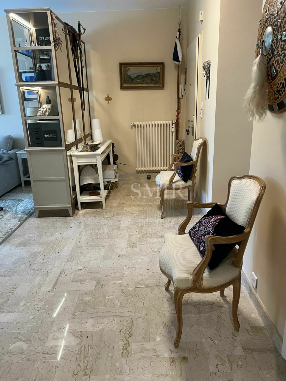 This apartment comprises an entrance hall with storage space, a spacious living room with an open-plan fitted kitchen and dining room opening onto the large terrace, a bedroom with dressing room, a bathroom and a guest toilet.