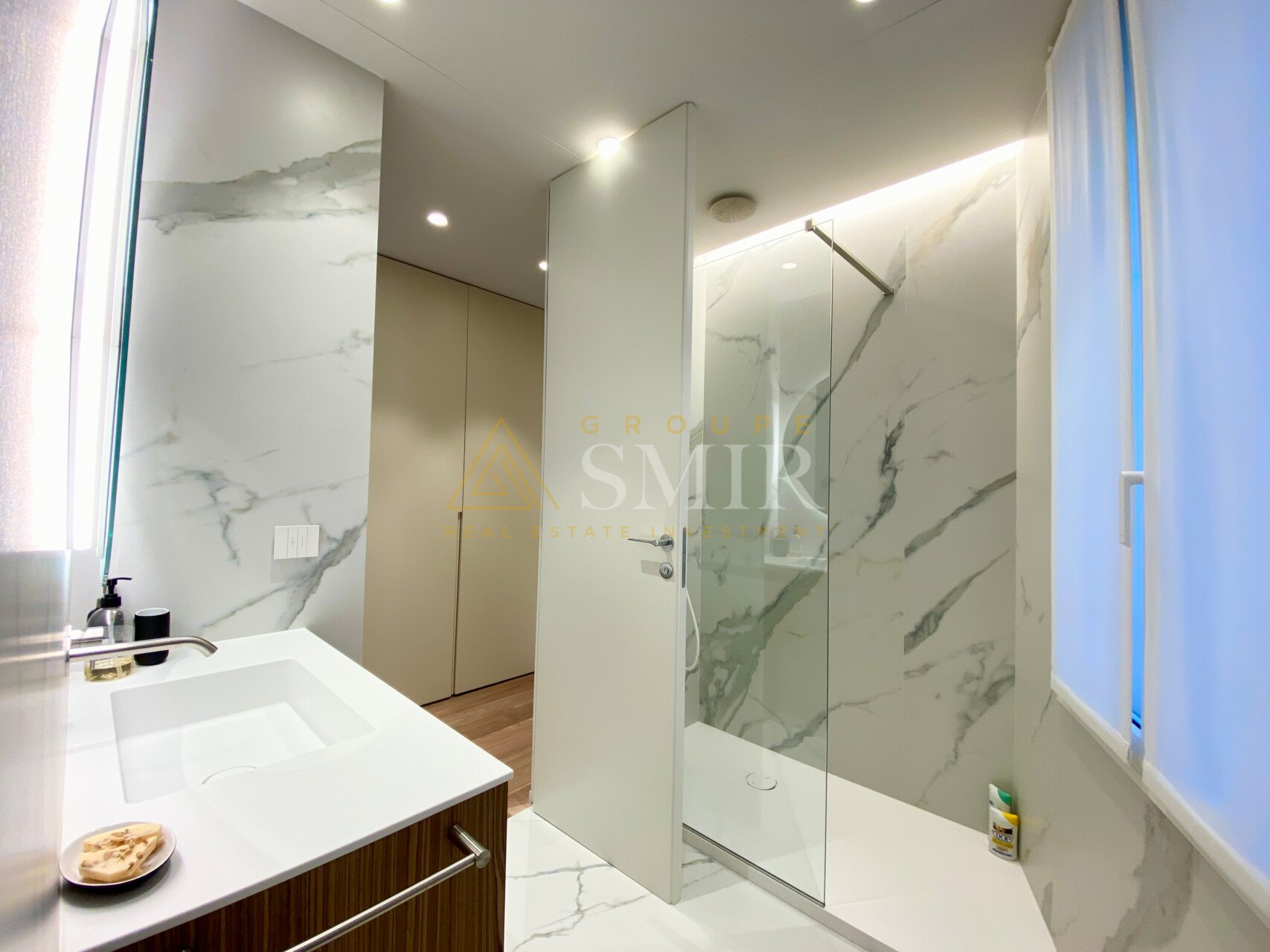 This apartment comprises a spacious living room with dining area and a fully-equipped open-plan kitchen. The master bedroom offers plenty of cupboard space and a private bathroom, while a second bedroom with cupboard space benefits from an en suite shower room. A large terrace completes the ensemble, offering access from the living room, kitchen and master bedroom.