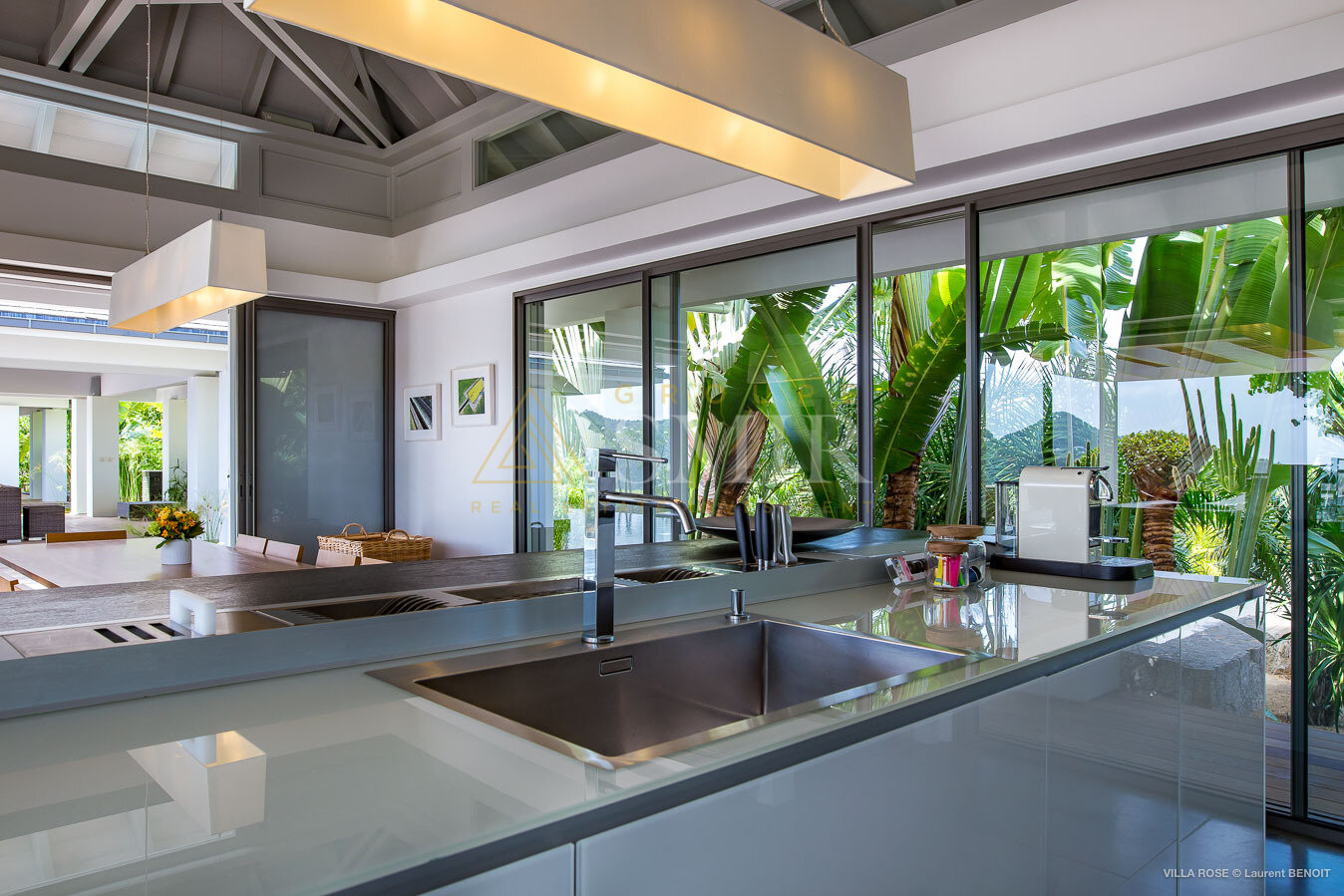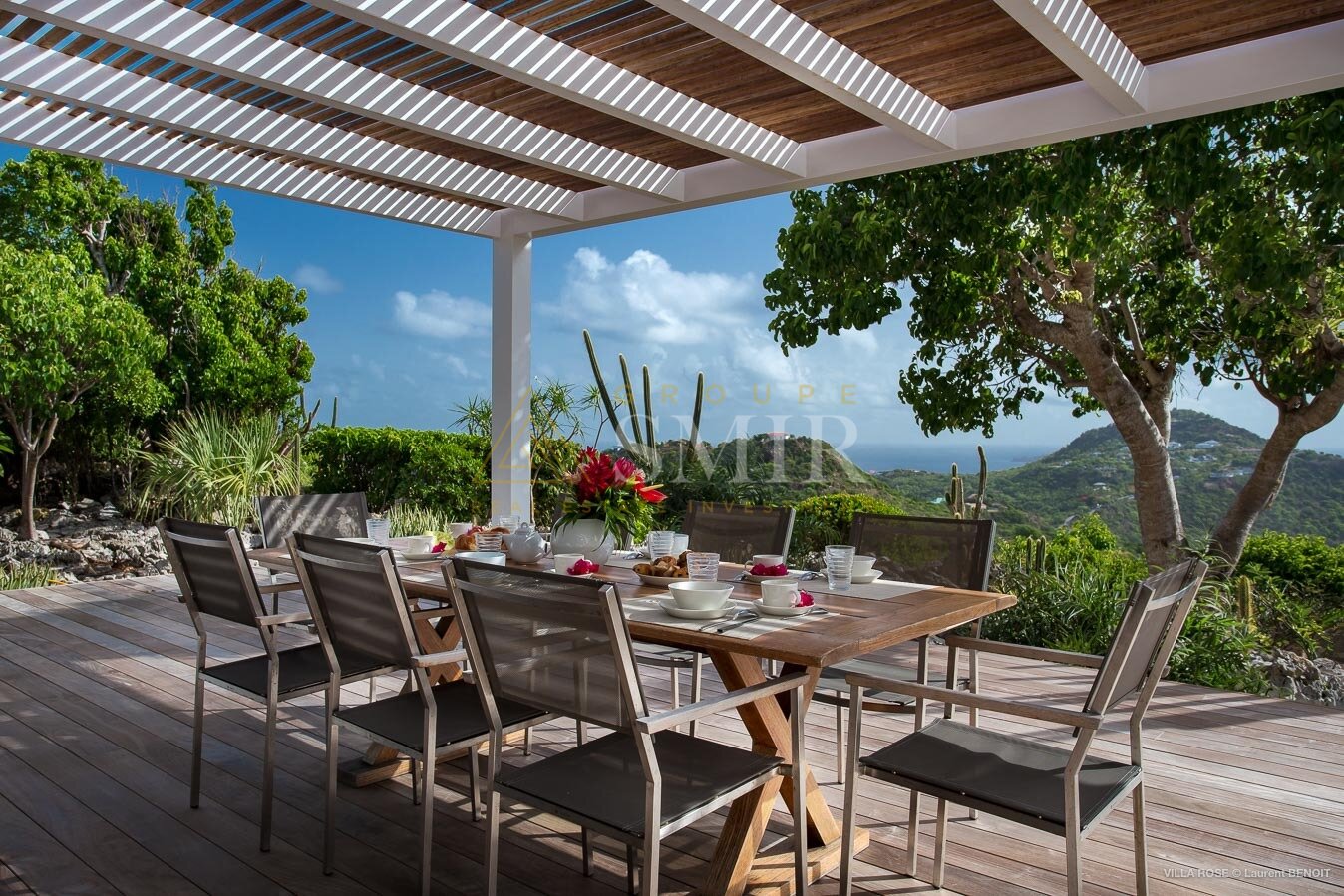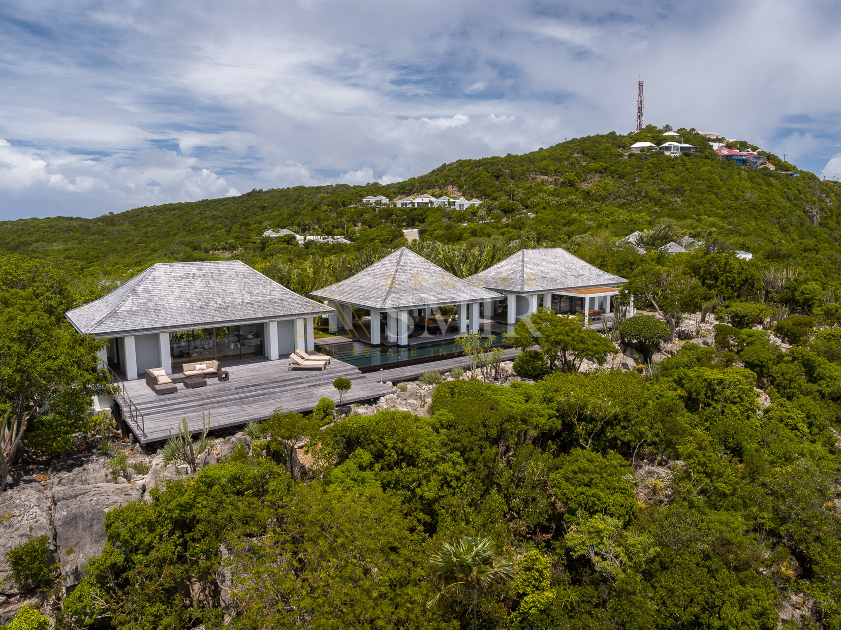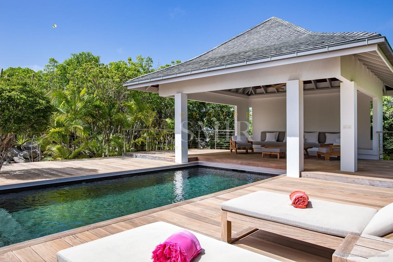 Located in a private domain on top of the Gouverneur hills, this unique villa offers a breathtaking view of the hills, the Saint-Jean Bay and the Pacific Ocean. The island provides its residents with an exquisite mixture of hills, valleys, mountains and beaches. A distinctly French feeling and endless beaches whose white sand glistens in the ever-present sun.