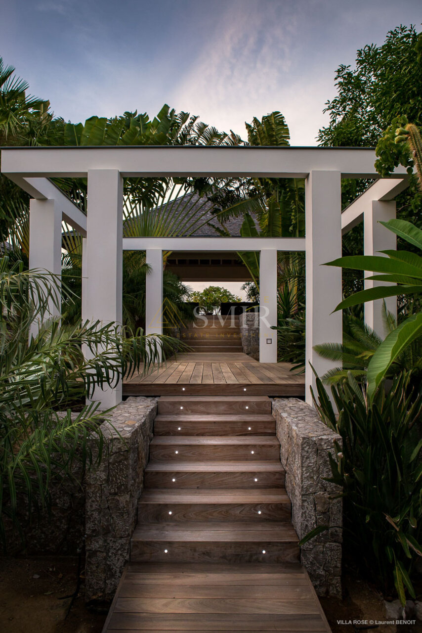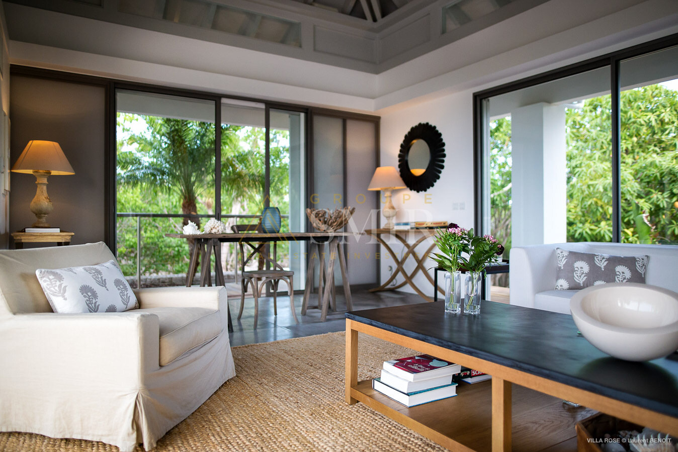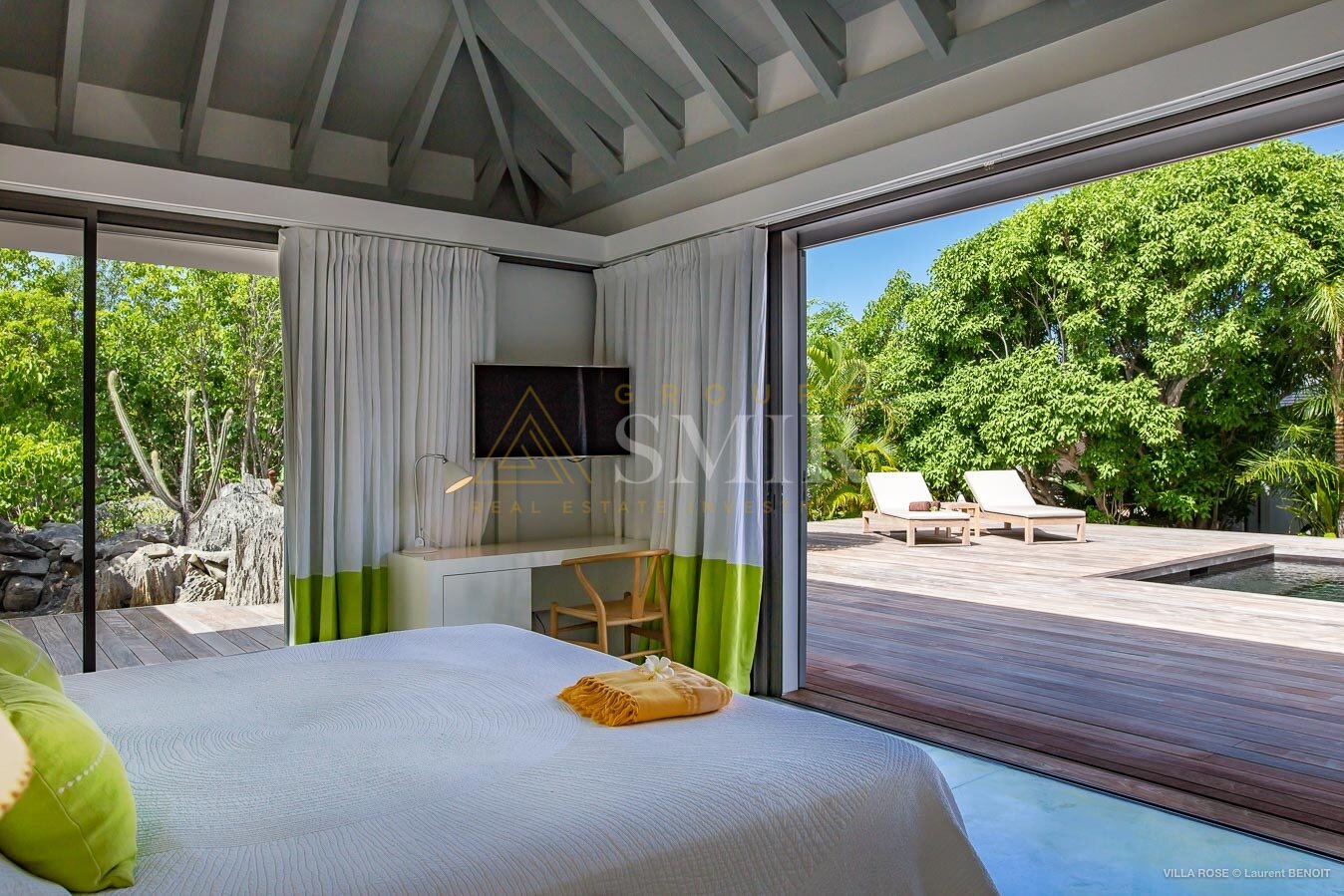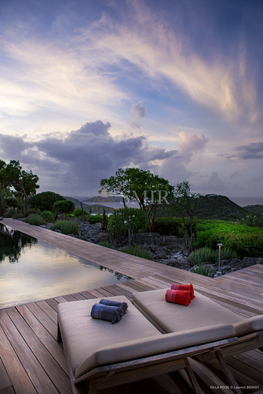 Located in a private domain on top of the Gouverneur hills, this unique villa offers a breathtaking view of the hills, the Saint-Jean Bay and the Pacific Ocean. The island provides its residents with an exquisite mixture of hills, valleys, mountains and beaches. A distinctly French feeling and endless beaches whose white sand glistens in the ever-present sun.